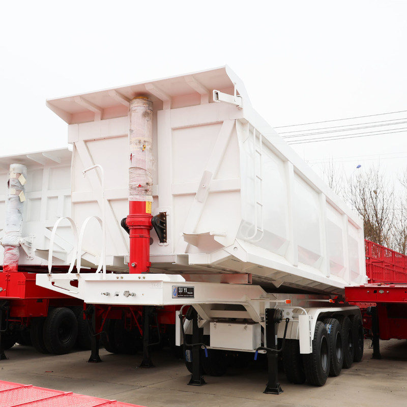 Dumptrailers hebben de mogelijkheid om het materiaal automatisch in een bepaalde hoek te dumpen, wat tijd en arbeid aanzienlijk bespaart, de transportcyclus verkort, de productie-efficiëntie verbetert,en vermindert de transportkostenDe wagen kan achterwaarts of zijwaarts worden gekanteld.