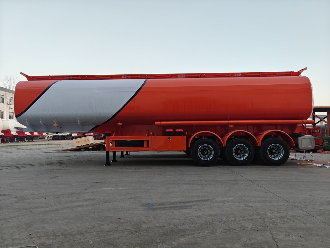 De tank van een brandstoftanker-aanhangwagen kan gemaakt worden van verschillende materialen, zoals aluminium, koolstofstaal en roestvrij staal.en het onderste uiteinde van de bufferplaat is ontworpen met door gaten om de impact van brandstof in de tank te verminderen en de sterkte van de tank te verbeteren.