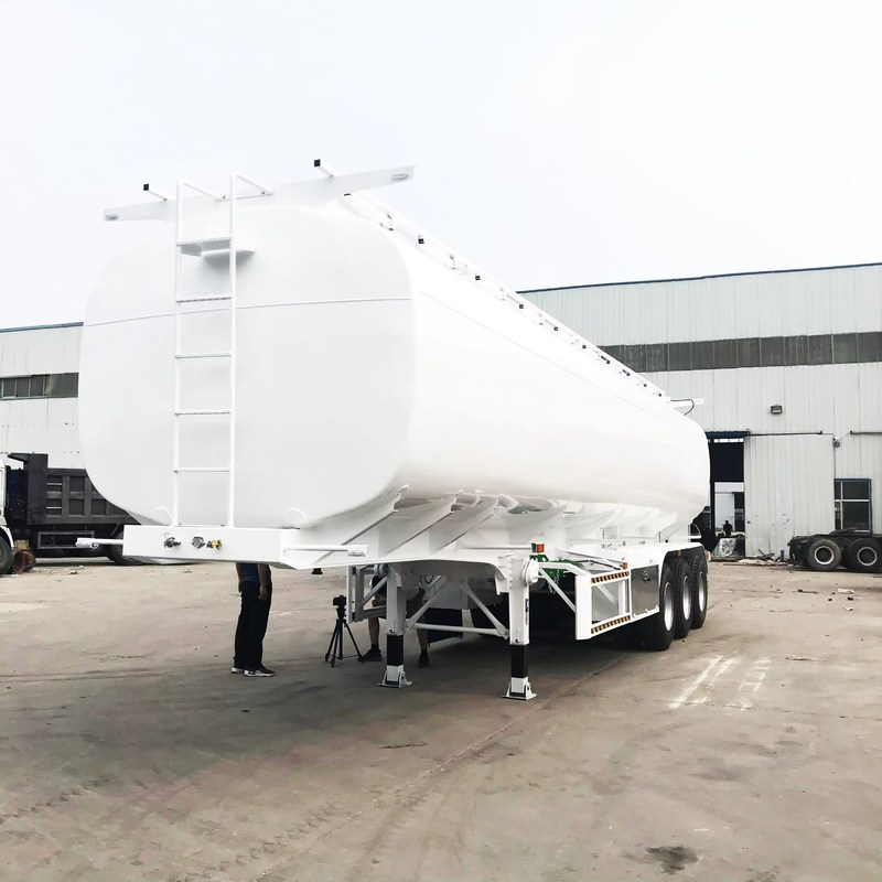 De tank van een brandstoftanker-aanhangwagen kan gemaakt worden van verschillende materialen, zoals aluminium, koolstofstaal en roestvrij staal.en het onderste uiteinde van de bufferplaat is ontworpen met door gaten om de impact van brandstof in de tank te verminderen en de sterkte van de tank te verbeteren.